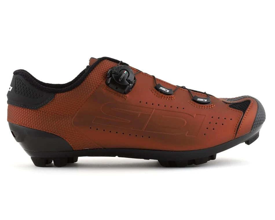 The Sidi MTB Dust Shoes bring elegance and style to an even lighter weight performance package. Sidi’s Tecno-3 dial system provide a customized fit with on the fly adjustability utilizing small increment changes. The wire material for the Tecno-3 dial is completely non-binding leading to intuitive and effortless adjustments. The Sidi lighter weight heel cup still provides better foot protection and power transfer. For this model Sidi used their MTB RS17 Sole constructed of durable Nylon and PU blend, which is lighter than the traditional competition sole and has been updated with a more aggressive tread pattern while still maintaining the replaceable toe tread insert. The RS17 represents the ultimate result in terms of stiffness for pedaling and flexion for walking. Not only do the MTB Dust shoes look fantastic, but they also pedal like champions.