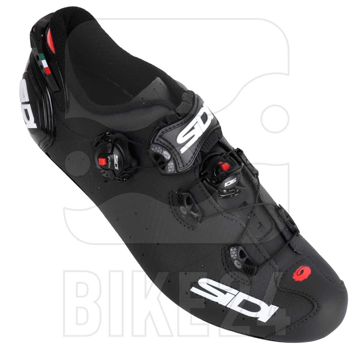 The ROAD model from SIDI at professional level, developed in close cooperation with the best riders of the Protour teams. Due to the direct power transmission to the light, stiff full carbon sole, the shoe offers first-class performance with even pressure distribution over the whole foot. Maximum comfort thanks to individual heel adjustment and a new combination and positioning of the twist closures.